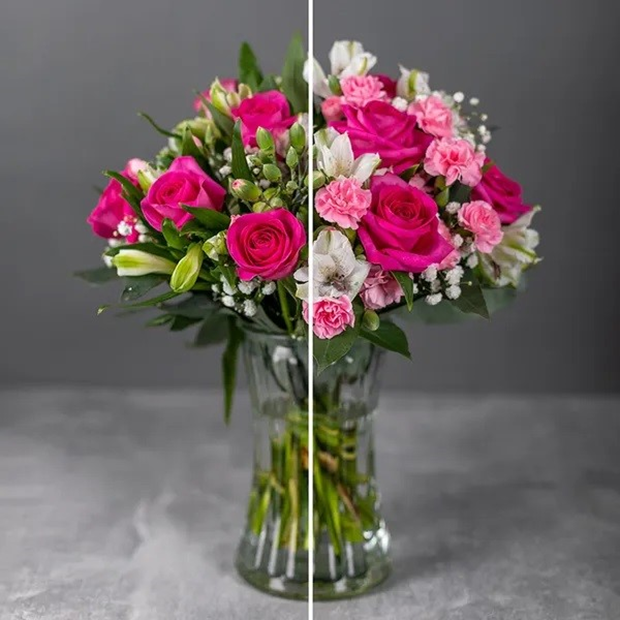When your bouquet arrives, the flowers may appear thirsty due to their journey. To give them a little boost, we recommend giving the stems a trim and providing them with water. This will help rehydrate the flowers and encourage them to perk up and reveal their full beauty.